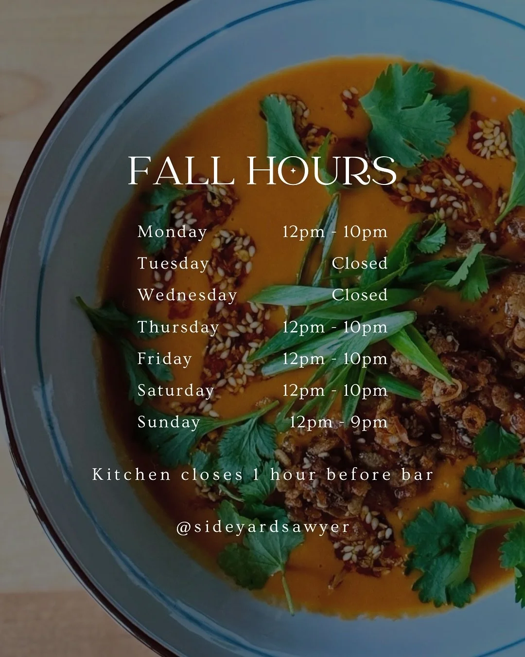 SUN: 12 - 9 l KITCHEN 12 - 8